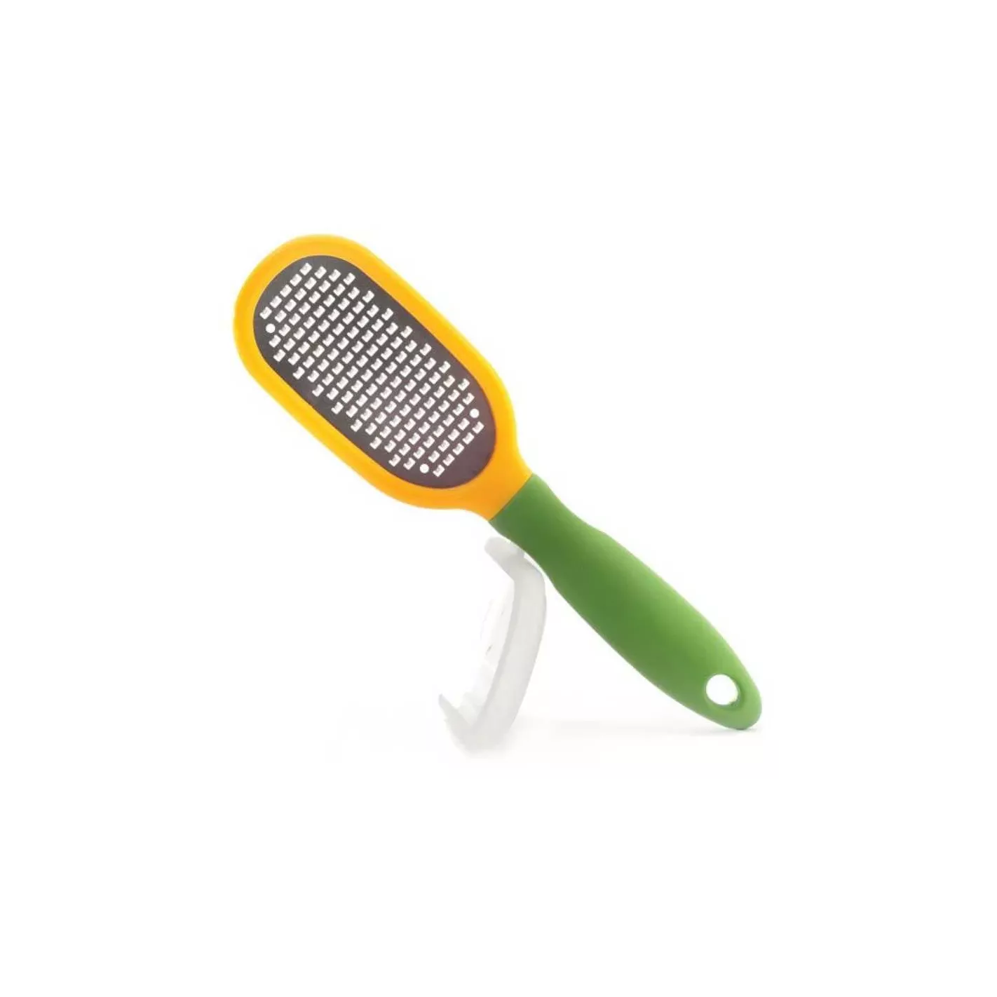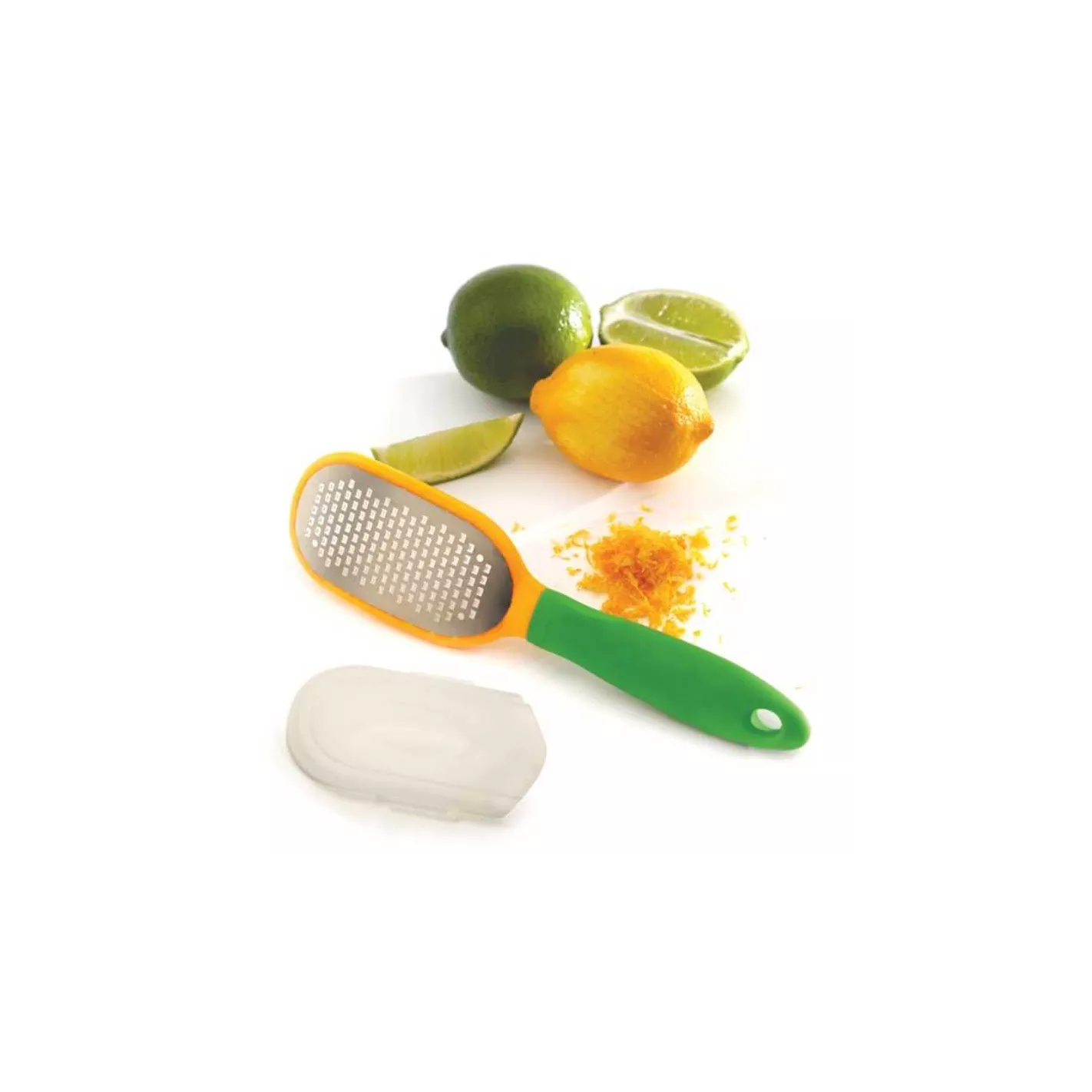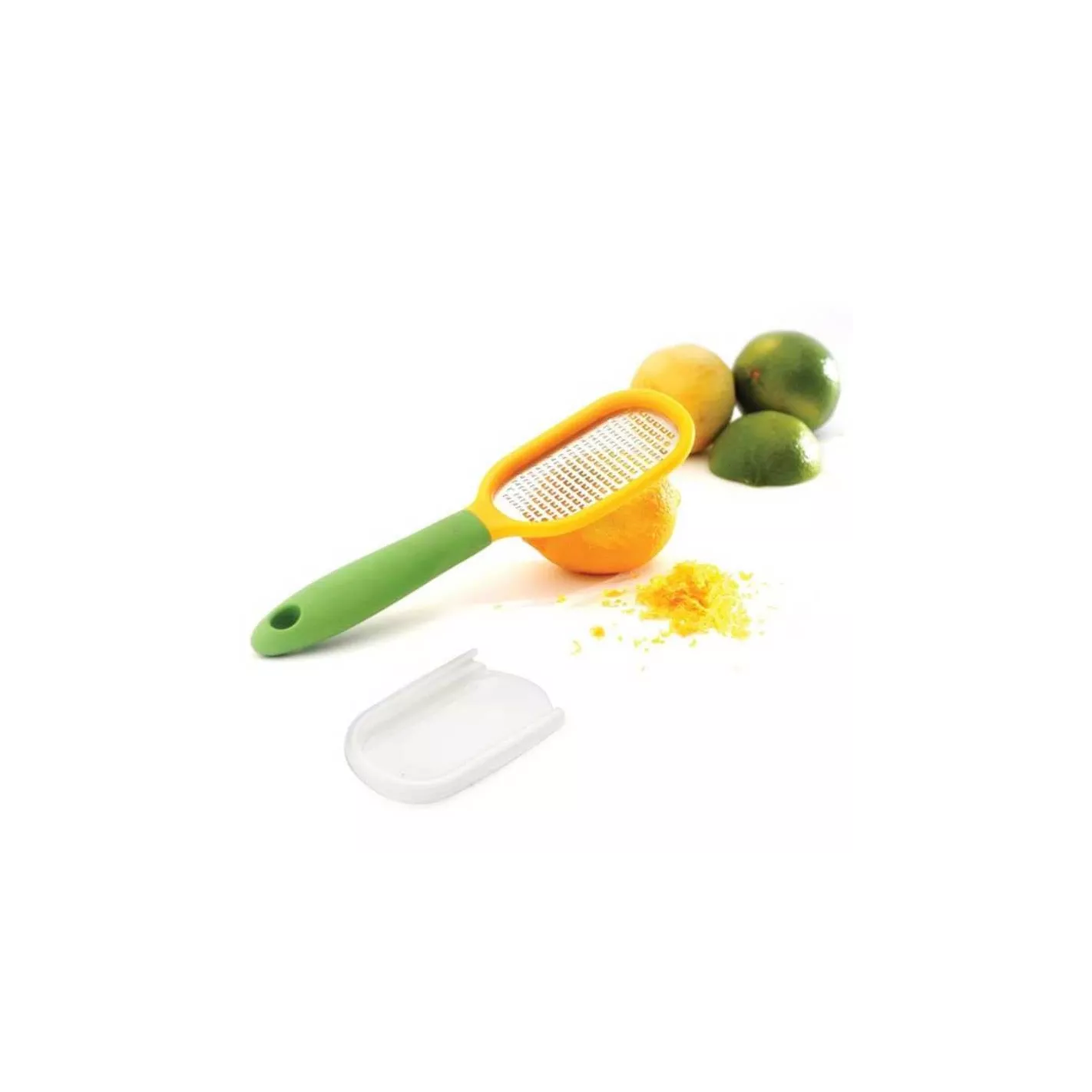 Hoja grabada con láser ideal para ralladura de limas limón, naranjas. Rallar quesos duros, nuez moscada y chocolate. Mango ergonómico, suave y antideslizante. La funda protege la hoja y es ideal para guardarla. Sin BPA.